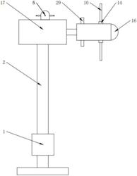 所述转动杆(15)贯穿所述外壳(16)的侧部,其一端分别与所述第一拱形架(14)的拱板固定连接,另一端处于所述驱动电机(11)的转动轴侧方,所述转动杆(15)的轴线垂直于所述外壳(16)的轴线,并与所述第一拱形架(14)的转动轴线重合,所述转动杆(15)的外侧面分别与所述外壳(16)的侧部转动连接,转动轴线与自身轴线重合;
